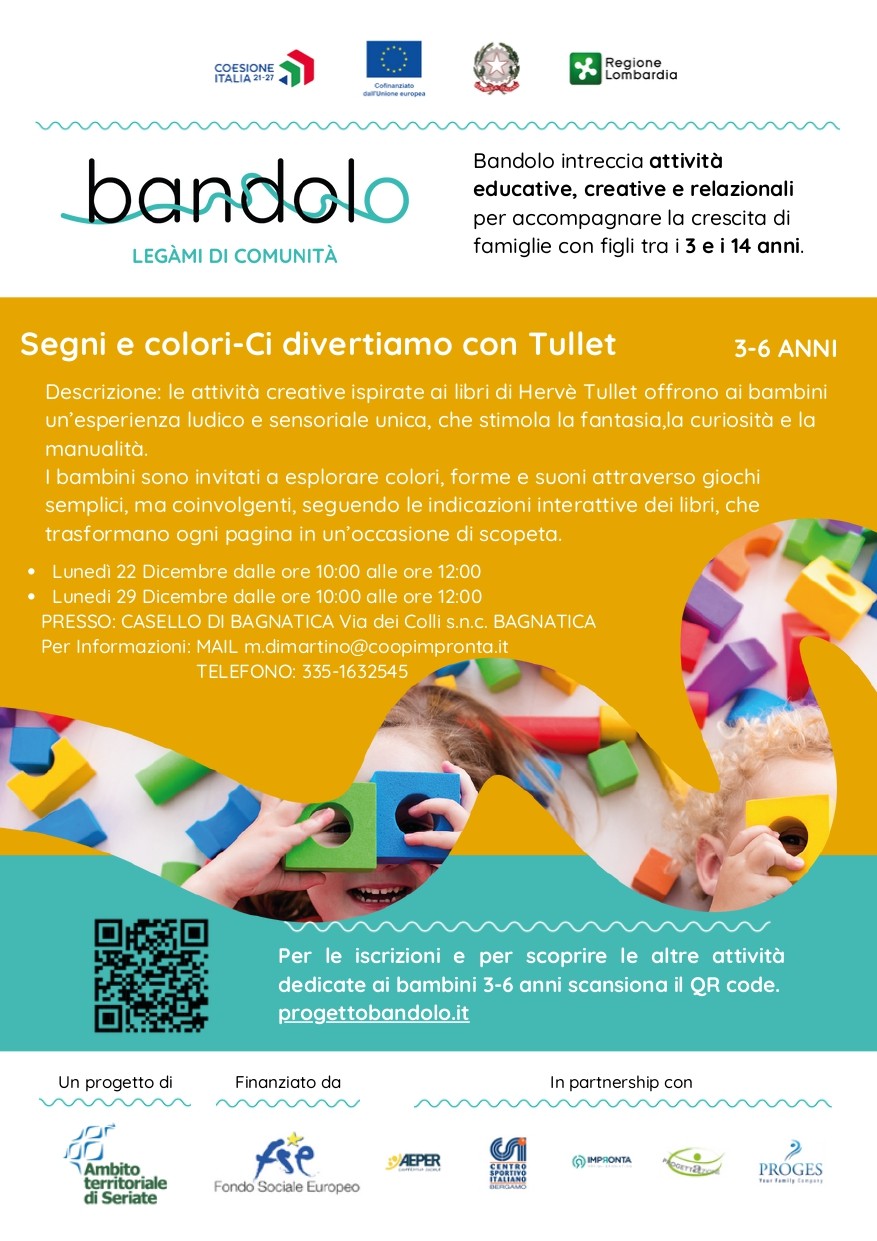 Per le iscrizioni e per conoscere le altre attività dedicate ai bambini 3–6 anni è possibile visitare il sito www.progettobandolo.it o scansionare il QR code presente nel volantino.