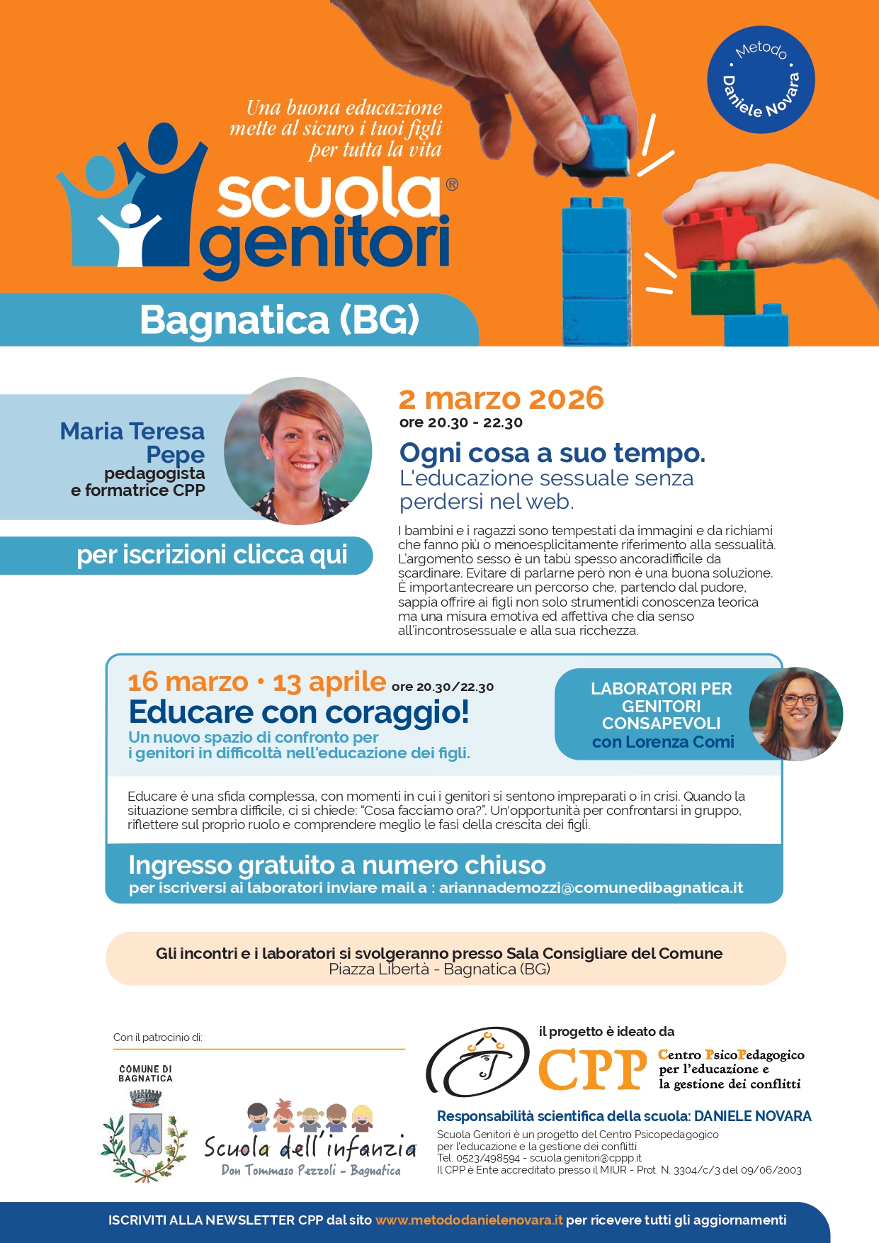 È possibile iscriversi alla newsletter CPP sul sito www.metododanielenovara.it per ricevere aggiornamenti su tutte le iniziative.